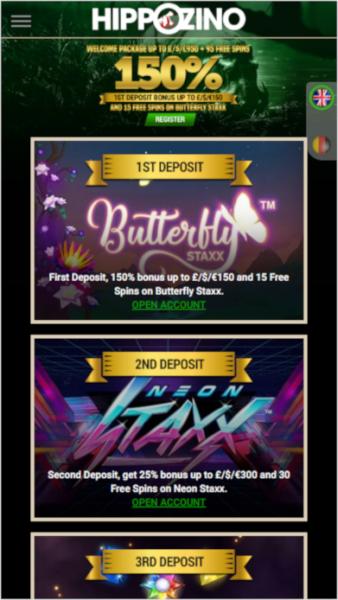In-terms of looks; Hippozino Casino features a sub-Saharan theme with a splash of dark green completing the effect. Navigation is very intuitive, and the casino plays very well on smartphones and tablets so you can take the casino action anywhere with you.